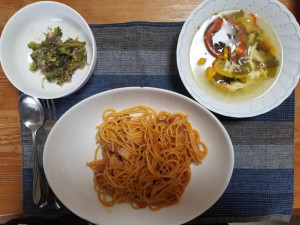 今日の朝&昼食はナポリタン。