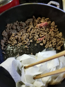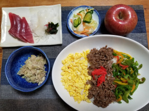 冷蔵庫と相談して千切りキャベツとツナ缶のコラボです。