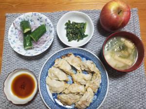 塩もみした胡瓜と紫玉葱をドレッシングで。