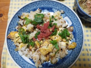 夜は冷凍していたご飯があったので