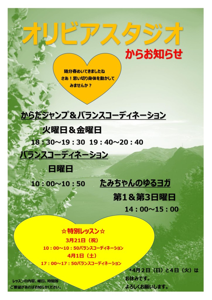 今月のレッスン予定
