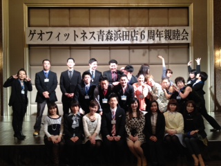 昨日は、大忙し中村俊子です。昨日、ホテル青森にてゲオフィットネス青森浜田店6周年親睦会が開催されました。会員の皆さまに楽しんでいただく為、スタッフ、インストラクターで余興のダンス…エアロ…ビンゴゲームを行いました!写真は、スタッフとインストラクーです。会員の皆様、今後ともよろしくお願いしますm(_ _)m