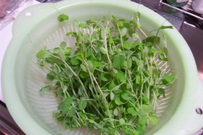 豆苗は最後に入れてサッと和えれば、すぐにしなっとなります