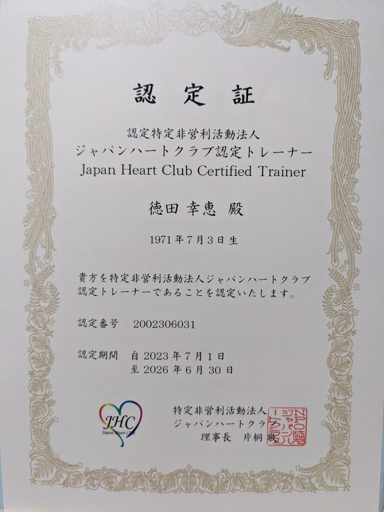 JHC認定証 2023.07.29 関連記事一覧 健康を願う 快腸ですか? 2021.02.23 私事ですが… 北海道に行ってきました 2024.09.30 しなやかな身体 ストレッチ 2020.10.21 骨盤底筋体操×ひめトレ® 骨盤底ヘルスケアアドバイザー 2023.08.31